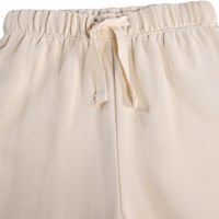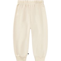 Mjuka, gräddfärgade mjukisbyxor för de små i ekologisk bomull med regnbågsmönster på knäna. Mjukisbyxorna har resår och dragsko i midjan, ribbade kanter vid anklarna och en oborstad insida.
