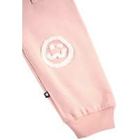 Mjuka ekologiska bomullbyxor för de små. Byxorna är rosa med mjuka vita ansikten i olika stämningar på knäna. Byxorna har resår och snörning i midjan och muddar vid ankeln. De är lätta att ta av och på och ger gott om utrymme att röra sig. Kombinera dem med den matchande tröjan för en komplett outfit.
