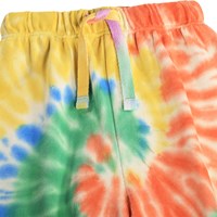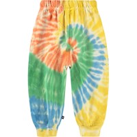 Flerfärgade mjukisbyxor för de små i ekologisk bomull med ett batikmönster. De är mjuka och bekväma med resår och dragsko i midjan, ribbade kanter vid anklarna och en oborstad insida. All vår batik är handgjord vilket skapar unika mönster som varierar från plagg till plagg.