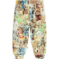 Multifärgade sweatpants för de små tillverkade av ekologisk bomull med en oborstad insida, vilket gör dem behagligt svala på varma dagar. Byxorna har gummiband i midjan och dragsko samt ribbstickade muddar vid benen. De är lätta att ta på och av och ger gott om rörelsefrihet. Byxorna har ett mönster med björnar som kramas, myser eller bara har fest.