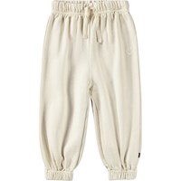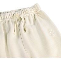 Mjuka, vita mjukisbyxor för de små i ekologisk bomull. Mjukisbyxorna har en lös passform, elastisk midja med dragsko och resår vid anklarna, vilket gör dem lätta att ta på och av. De är lätta och bekväma vilket gör dem perfekta för vardagsbruk.