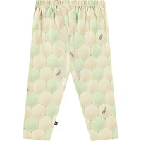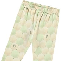 Byxor i ekologisk bomullsjersey för de små. De har en åtsittande passform med resår i midjan och fotbollsmönster i beige och ljusgrönt.