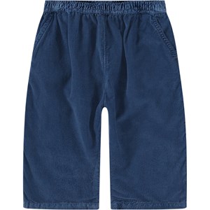 Blå byxor i ekologisk bomull för de små. Byxorna är tillverkade av mjuk ribbad manchester och har en lös passform. De har både fram- och bakfickor samt gummiband i midjan, vilket gör dem lätta att ta på och av.