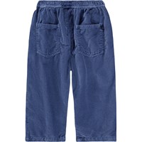 Blå byxor för de små i ekologisk bomull. Byxorna har en lös passform med fram- och bakfickor och en elastisk midja som gör dem lätta att ta på och av. Den ljusa och luftiga designen säkerställer gott om utrymme att röra sig och på fickan hittar du en liten broderad smiley. Kombinera byxorna med den matchande tröjan för att få en komplett och bekväm uppsättning.