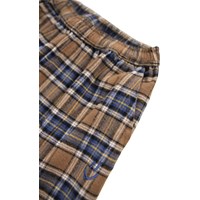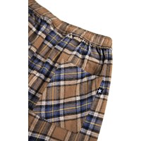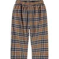 Bruna och blå rutiga byxor för de små i ekologisk bomull. Byxorna har en lös passform med fram- och bakfickor och en elastisk midja för att göra dem lätta att ta på och av. Den ljusa och luftiga designen säkerställer gott om utrymme att röra sig och på fickan hittar du en liten broderad smiley. Kombinera byxorna med den matchande tröjan för en komplett och bekväm uppsättning.