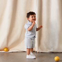 Sois är ett par ljusblå babybyxor i en härlig bomulls och linne blandning. Kombinera byxorna med den matchande skjortan för en cool sommarlook.