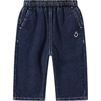 Blå jeansbyxor för de små med en lös passform och både fram- och bakfickor. Byxorna har gummiband i midjan, vilket gör dem lätta att ta på och av. De är lätta och luftiga, vilket ger gott om rörelsefrihet. Det finns också en liten broderad smiley vid fickan.