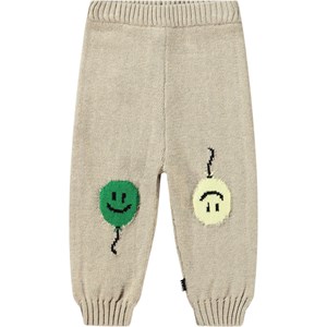 Beiga bomulls/ullbyxor med ribbning i midjan och benen för de små. Byxorna är prydda med glada och färgglada ballonger på knäna.