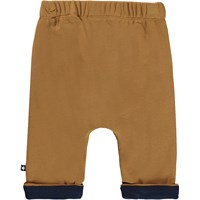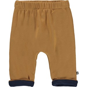 Soyo är ett par bruna sweatpants till baby med gummiband i midjan och uppvikta ben. Byxorna har bra rymlighed.