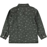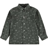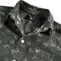 Grön skjorta i jacquarddenim-bomullsblandning med vävda alienmönster i tyget. Skjortan har två fickor framtill och knäppning med knappar och kan bäras både stängd eller som en overshirt över en T-shirt för en avslappnad look.