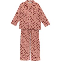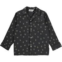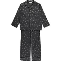 Tvådelad pyjamas i svart med olika handtecken. Byxorna har knytband i midjan och tröjan har långa ärmar.