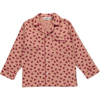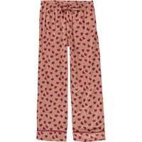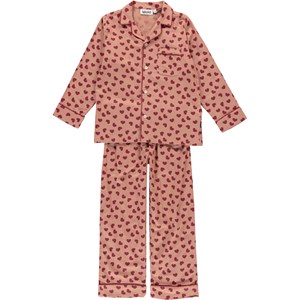 Tvådelad pyjamas i rosa med röda hjärtan. Byxorna har knytband i midjan och tröjan har långa ärmar.