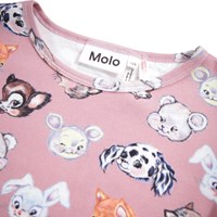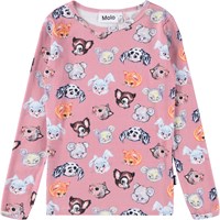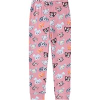 Rosa pyjamas i ekologisk bomull. Byxorna har resår i midjan och muddar vid ankeln. T-shirten har en rund halsringning och söta ritade djur.