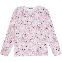 Lila pyjamas i ekologisk bomull med resår i midjan och muddar vid anklarna. Toppen har en rund hals. Setet har ett heltryckt mönster av bedårande katter.
