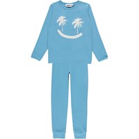 Luve är en ljusblå pyjamas med en vit palmsmiley på magen.