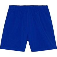 Blå pyjamas med smiley i ekologisk bomull. Setet är tvådelat med en lös t-shirt och ett par shorts med gummiband i midjan.