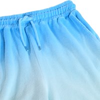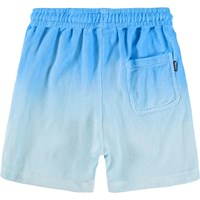 Ljusblå, knälånga shorts med dip-dye-effekt i snabbtorkande ekologisk bomullsfrotté. De har en lös passform, elastisk midja med dragsko, sidofickor och en enda bakficka. Perfekta för både strand och pool.