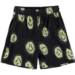 Abay är ett par frotté shorts i svart med gula smileys. Shortsen har en lös passform med fikor i sidorna och gummiband i midjan med knytband. Kombinera shortsen med matchande t-shirt.