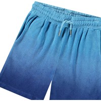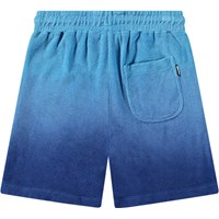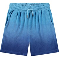 Knälånga frottéshorts för aktiva barn i ekologisk bomull i nyanser av blått. Shortsen har en lös passform, elastisk midja med snörning, sidofickor och en bakficka. Den mjuka bomullsfrottén torkar snabbt och är perfekt för stranden eller poolen.