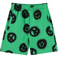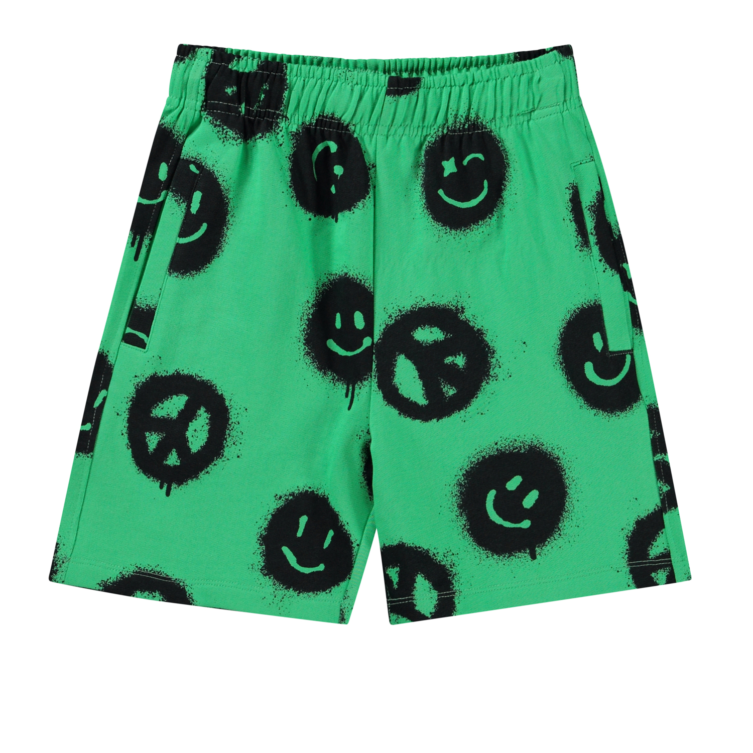 Adian är ett par unisex shorts i grön med peacetecken och smileys.