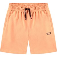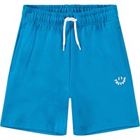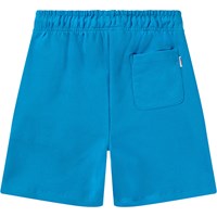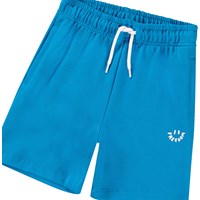 Ekologiska bomullssweatshorts. Dessa shorts har en normal passform, når knäna och har vida ben. De har en resår i midjan med invändigt snöre, samt sidofickor och en enda bakficka. Shortsen är turkos med ett litet upphöjdt gummitryck av en smiley, med ordet 'Freedom' som mun. För en komplett outfit, matcha med den matchande sweatshirten.