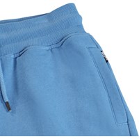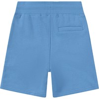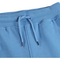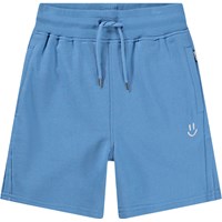 Blå shorts i mjuk ekologisk bomullsjersey. De har en enkel och avslappnad look med sidofickor, en bakficka och ett litet broderat smiley-ansikte på framsidan. Midjan är elastisk och kan justeras med en dragsko för optimal passform.