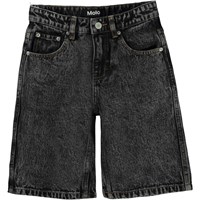 Art är ett par knälånga jeansshorts i svart. Shortsen har fickor både fram och bak och en brun läderpatch med logga baktill. Denna Molo vara är tillverkad i certifierad ekologisk bomull.