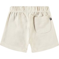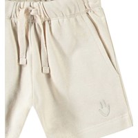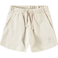 Mjuka shorts i ekologisk bomull för de små. Elastisk midja med dragsko, två fickor och gott om plats att röra sig. Dessa shorts är ljusbeige med en broderad smiley på ett ben.
