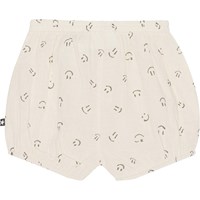 Somos är ett par ljusa babyshorts i bomull med små smileys. Shortsen har gummiband i midjan och benslut.