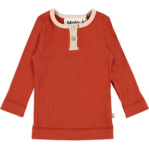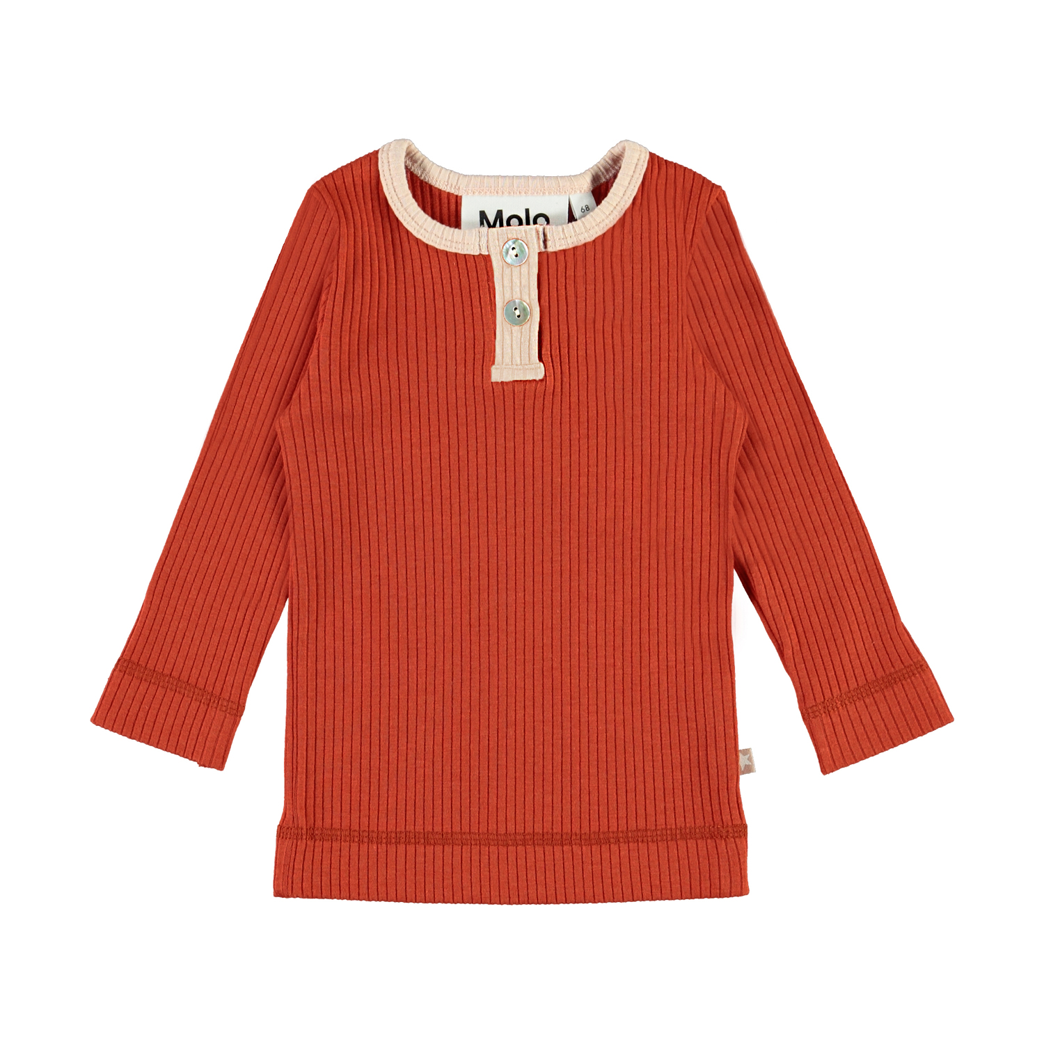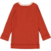 Earth är en röd ribbad babytröja med knappstängning samt en ljusgul kant i nacken. Kombinera blusen med matchande byxor.