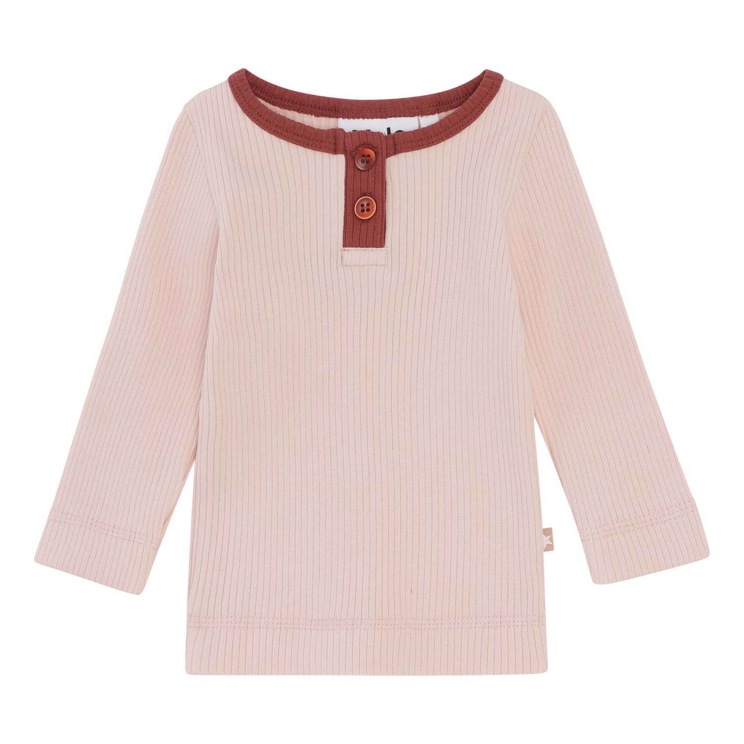 Earth är en puderfärgad babytröja i ribbad kvalitet med knappar och rosa kant vid halsen. Kombinera tröjan med matchande byxor.