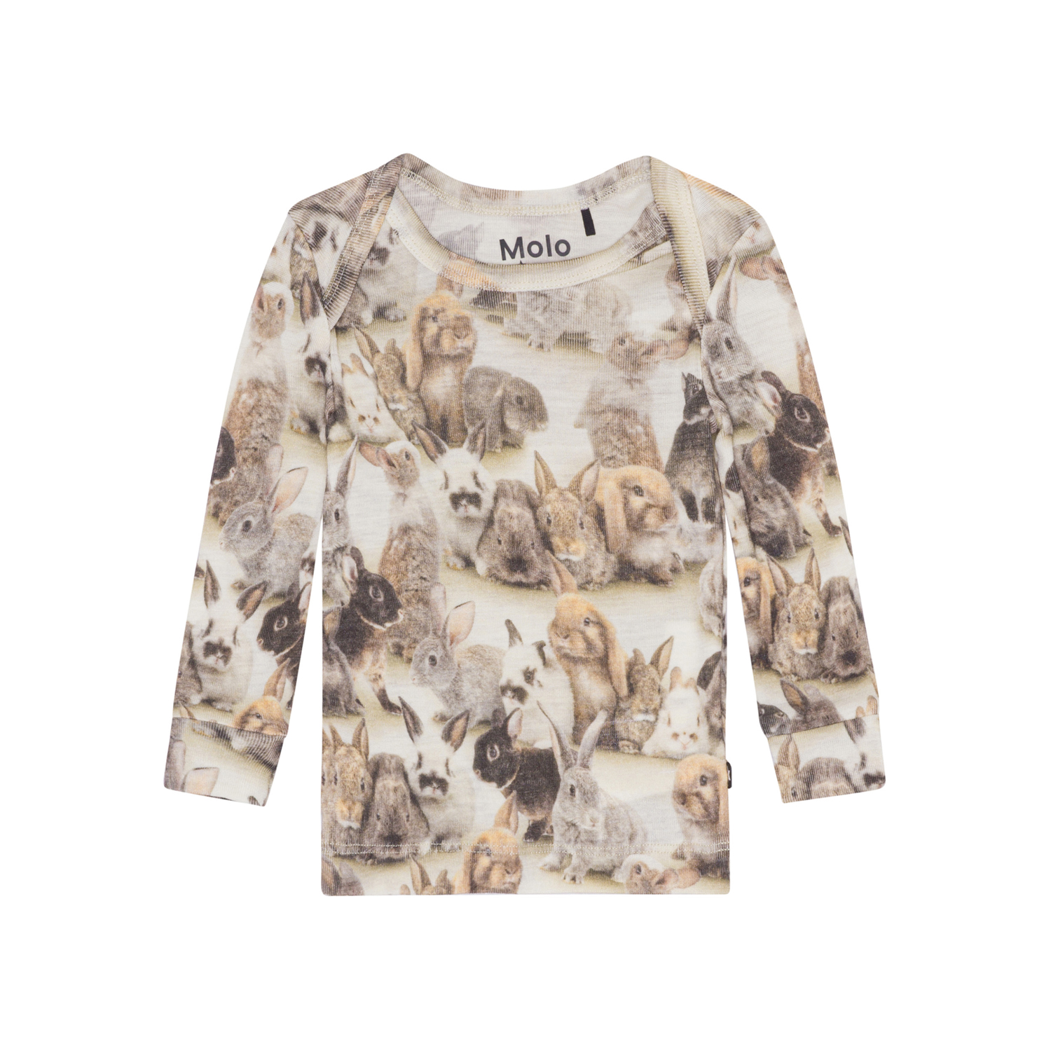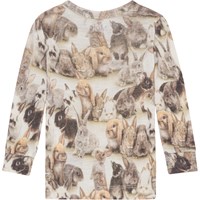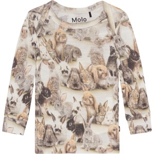 Långärmad tröja till de minsta i ljusa och bruna nyanser. Här ser du de sötaste kaninerna sitta tätt intill varadra. Denna tröja är tillverkad i 100% merinoull och har långa ärmar. Matcha ev. denna tröja med byxorna, Sting, i samma mönster.