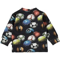 Eloy är en babytröja med färgrika fotbollar. Eloy har knappar på ena axeln vilket gör den enkel att få av och på.