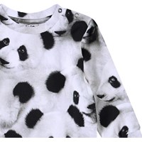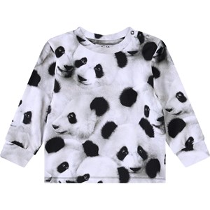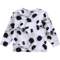 Långärmad topp i ekologisk bomullsjersey för de små. Toppen erbjuder bra flexibilitet, långa ärmar, ribbade muddar och en knäppning med knapp på axeln, vilket gör det enkelt att ta på sig. Toppen har ett pandamönster.