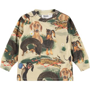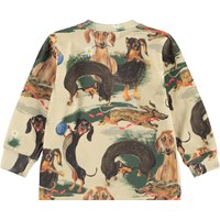 Långärmad topp för de små i ekologisk bomullsjersey med ritade taxar. Toppen har ribbade muddar och två tryckknappar på vänster axel för att göra den lätt att ta på sig.