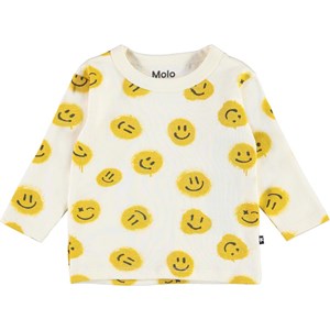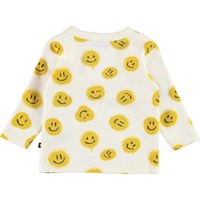Earth är en cremefärgad babytröja med roliga gula smileys och vit kant vid halsen. Kombinera tröjan med matchande byxor.