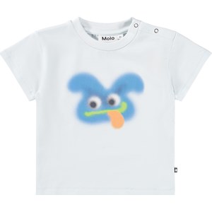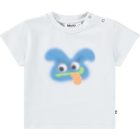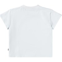 Klassisk ljusblå T-shirt för de små, med ett roligt mönster i ekologisk bomull. Den har en lös passform, rund hals med ribbad kant och tryckknappar på vänster axel för att göra den enkel att ta på och av.