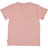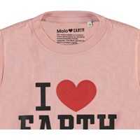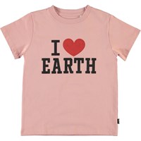 Reeve er är en rosa t-shirt med "I Love Earth" på framsidan.