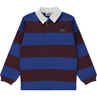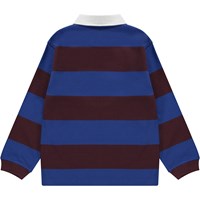 Blå- och vinrödrandig polotröja som är tillverkad i 100% bomull, har långa ärmar med ribbkant, vit skjortkrage, logo framtill och normal passform.