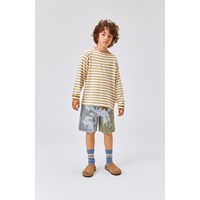 Rilder är en bretonrandig tröja med gyllene och vita ränder, med långa ärmar.