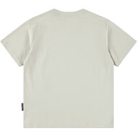 Off-white T-shirt i mjuk ekologisk bomull med korta ärmar och en ribbad halsringning. T-shirten har en lös passform med en smältande smiley på framsidan.