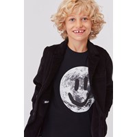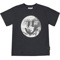 Riley är en svart unisex t-shirt med rund hals och jorklotet med en smiley på.