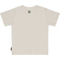 Vit t-shirt med ett stort grönt peacetecken framtill och bak i nacken sitter en liten version av samma tecken. Denna t-shirt är tillverkad i 100% ekologisk bomull, har korta ärmar, rund hals med ribbkant och en lös passform.