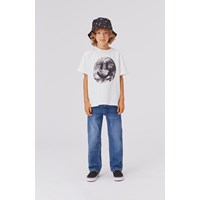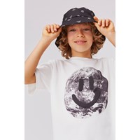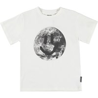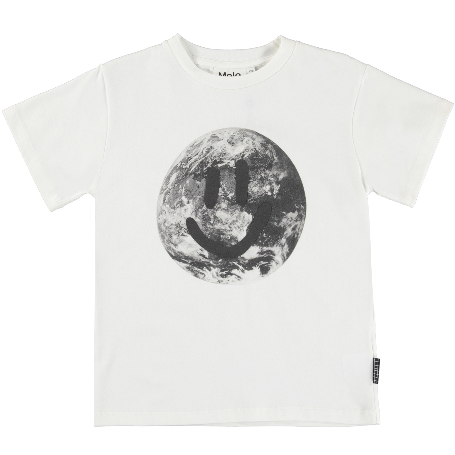 Riley är en vit unisex t-shirt med rund hals och jordklotet med en smiley på.