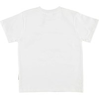 Roxo är en vit basic t-shirt med en svart smileytag på magen.