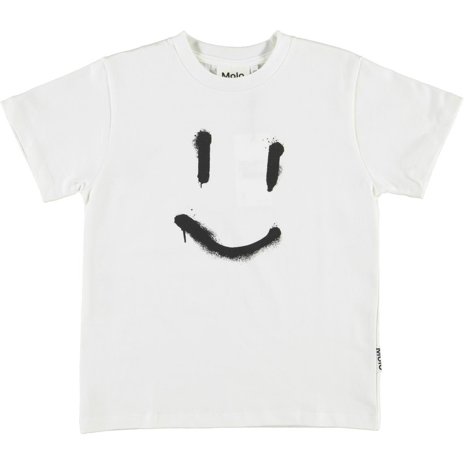 Roxo är en vit basic t-shirt med en svart smileytag på magen.