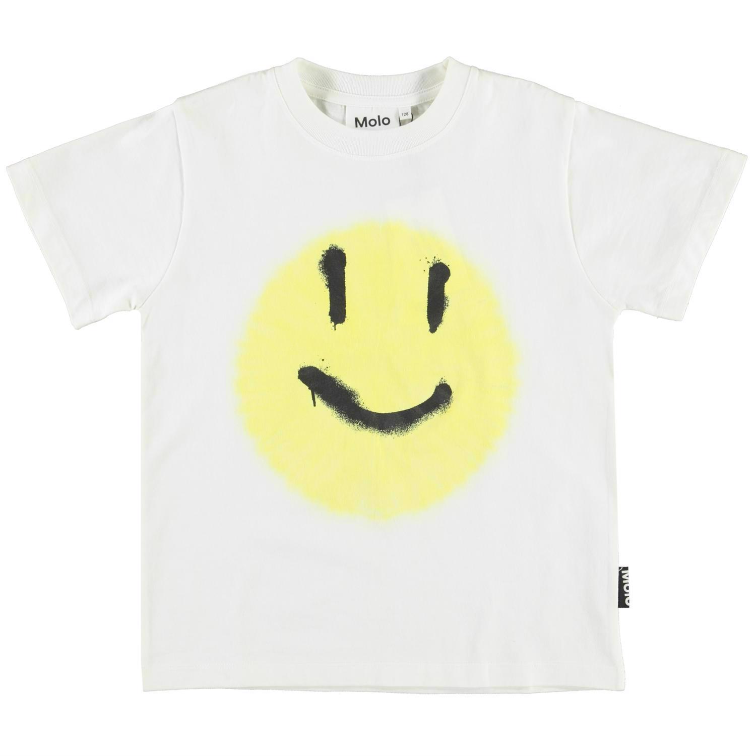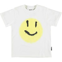 Roxo är en vit basic t-shirt med en gul spraymålad smiley på magen. I nacken är det skrivet "Happy Together".
