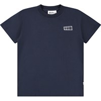 Roxo är en blå unisex t-shirt med rund hals och korta ärmar.