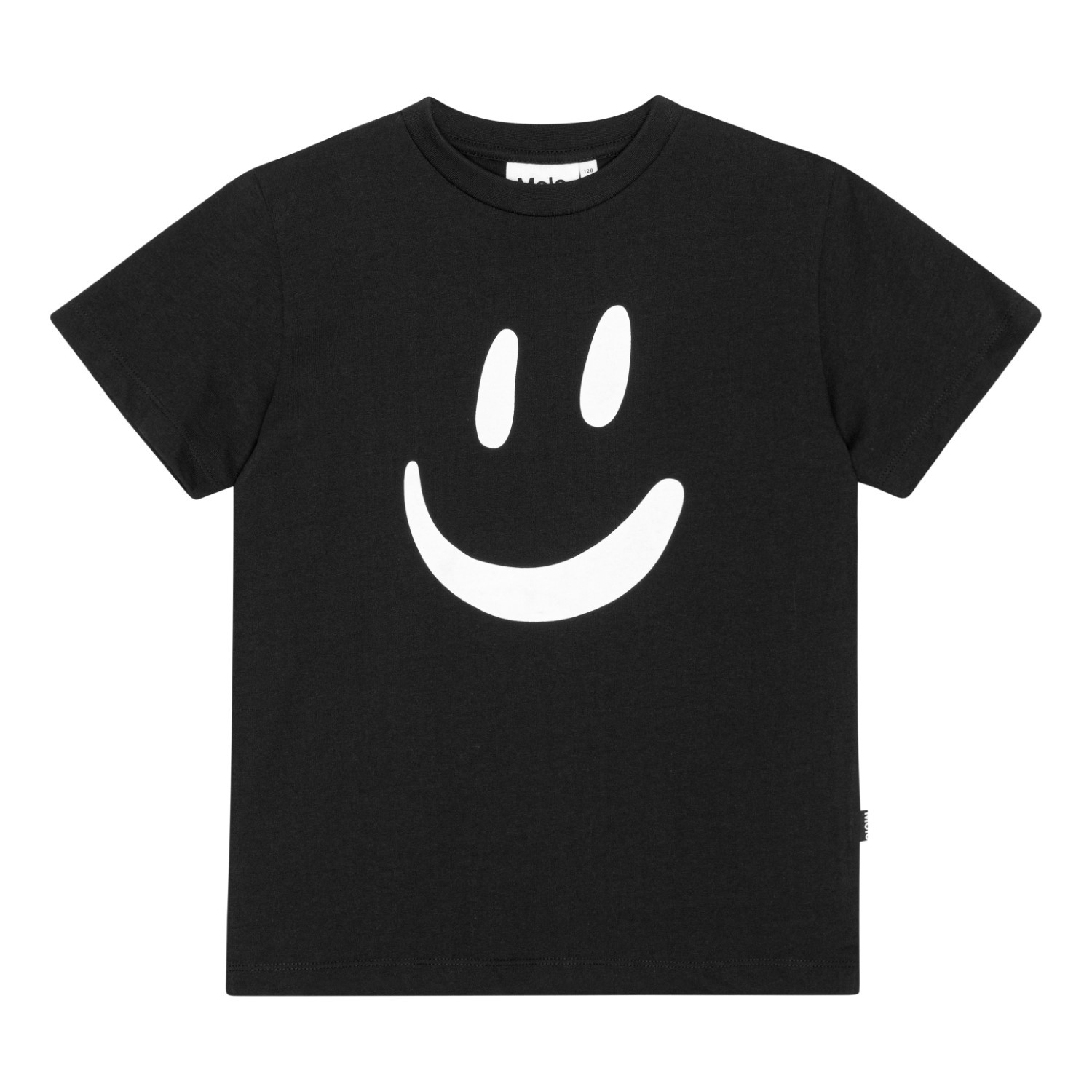 Svart kortärmad t-shirt i ekologisk bomull med stor smiley framtill. T-shirten har rund hals och en normal passform.