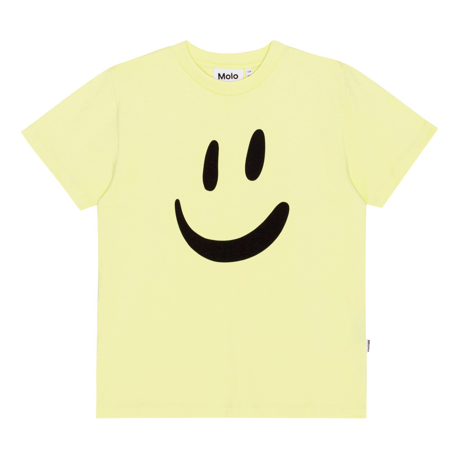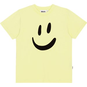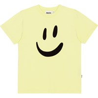 Gul kortärmad t-shirt i ekologisk bomull med stor smiley framtill. T-shirten har rund hals och en normal passform.